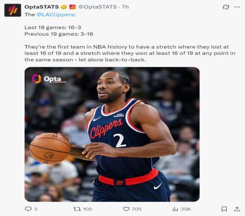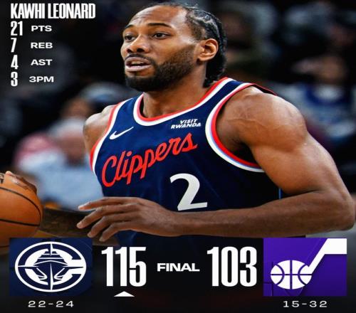 快船115-103大勝爵士拿到三連勝,這場比賽快船一度領(lǐng)先爵士達到21分,兩支球隊的硬實力明顯不在一個層次上面,如今的快船已經(jīng)不再是賽季初那支6勝21負的魚腩球隊,他們距離五成勝率只差2場,最近的19場比賽他們贏下其中16場同期聯(lián)盟第一。