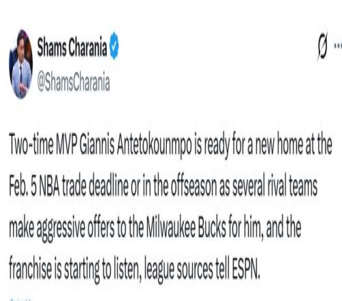 北京時(shí)間1月29日,據(jù)名記Shams報(bào)道,聯(lián)盟消息人士向ESPN透露,兩屆常規(guī)賽MVP得主字母哥已做好在2月5日交易截止日前更換東家的準(zhǔn)備。多支球隊(duì)已向密爾沃基雄鹿隊(duì)開出重磅報(bào)價(jià),而雄鹿方面目前也已開始聽取相關(guān)方案。